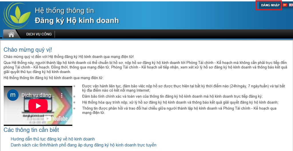 - Bước 1 – Truy cập cổng đăng ký hộ kinh doanh
